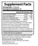 Magnesium, wolfberry, chamomile, lemon balm, passion flower, l-taurine, hops, St. John's Wort, GABA, skullcap, L-Theanine, Ashwagandha, Inositol